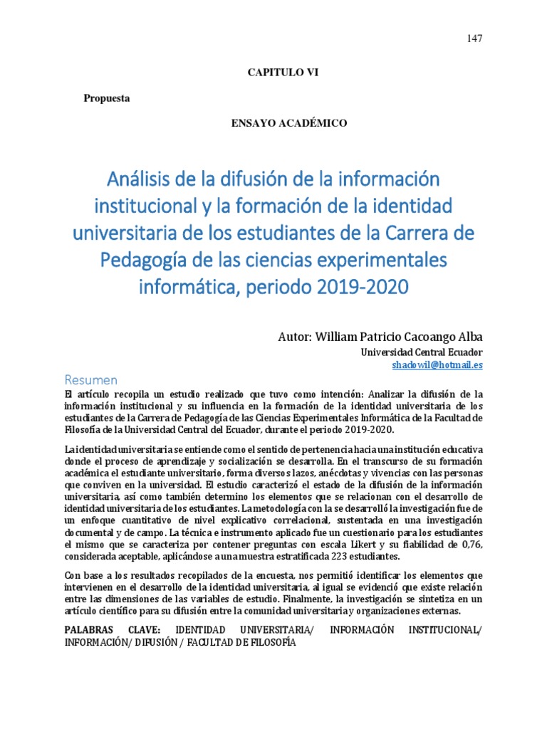 información institucional y su influencia en la formación de la identidad universitaria de los