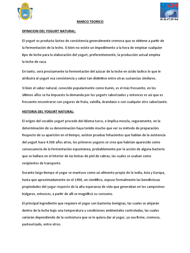 CARACTERISTICAS DEL YOGURTH NATURAL: