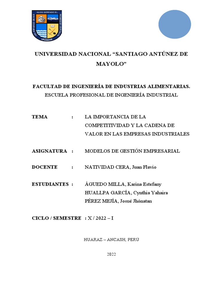 ASIGNATURA : MODELOS DE GESTIÓN EMPRESARIAL