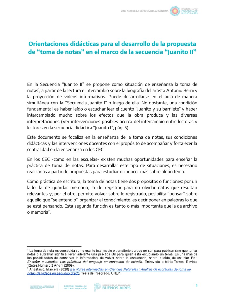 de “toma de notas” en el marco de la secuencia “Juanito II”