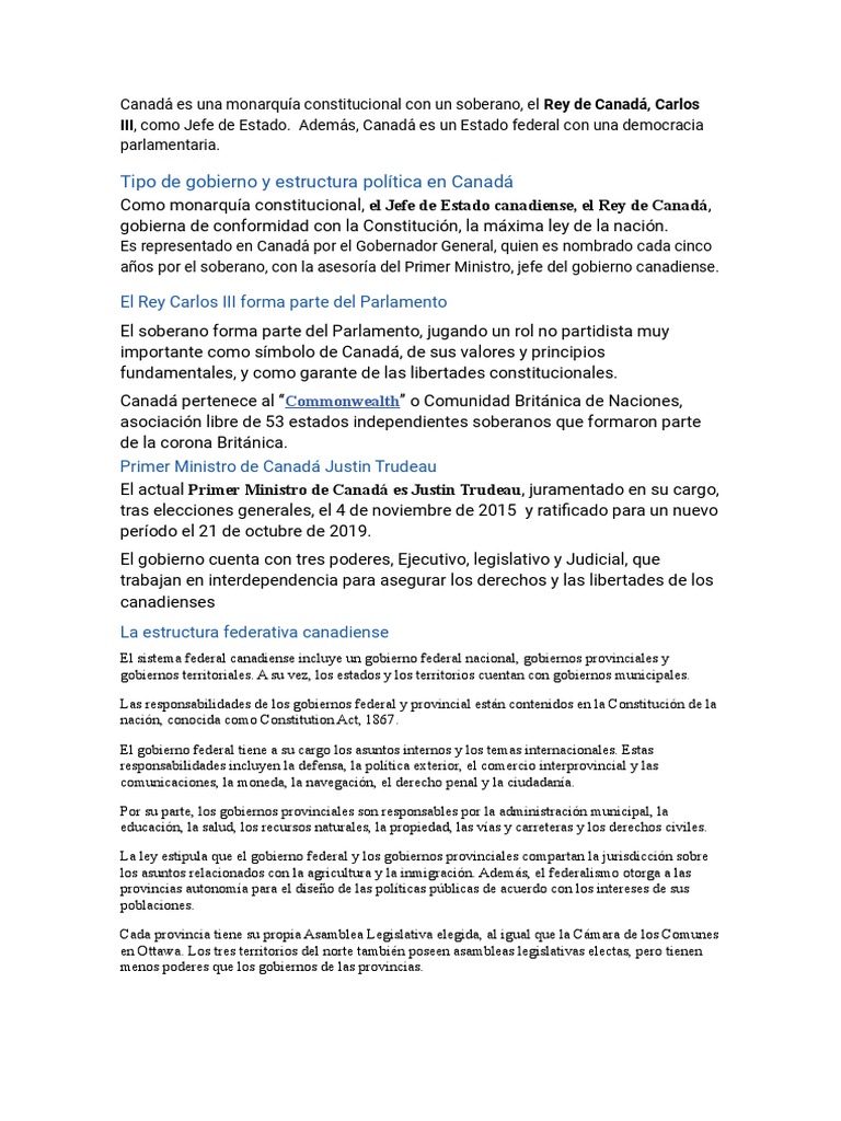 III, como Jefe de Estado. Además, Canadá es un Estado federal con una democracia