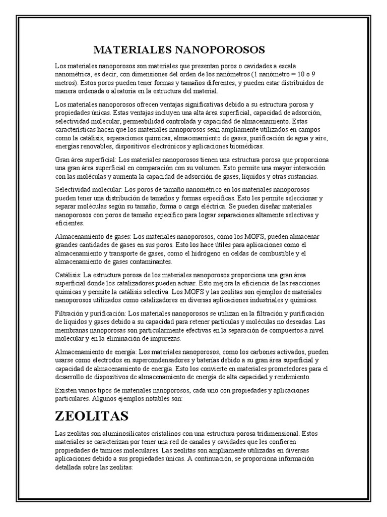 Los materiales nanoporosos son materiales que presentan poros o cavidades a escala