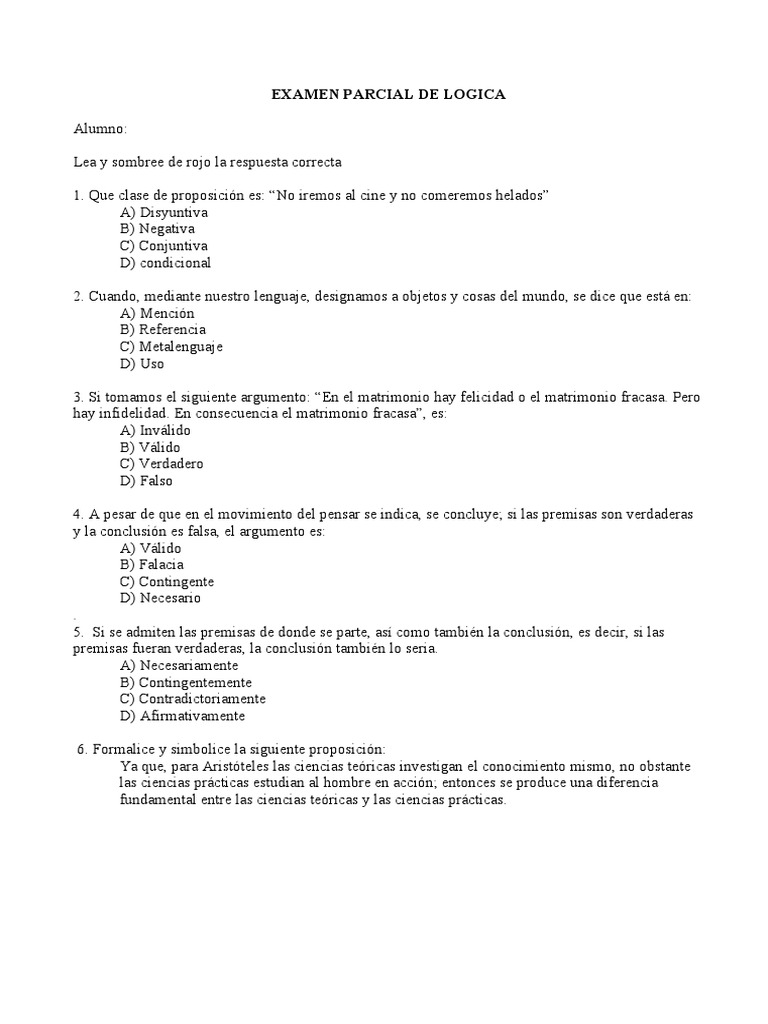 EXAMEN PARCIAL DE LOGICA
