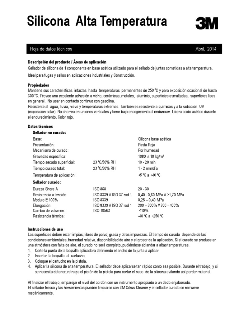 300°C. Provee una excelente adhesión a vidrio, cerámicas, metales, aluminio, superficies esmaltadas, superficies lisas