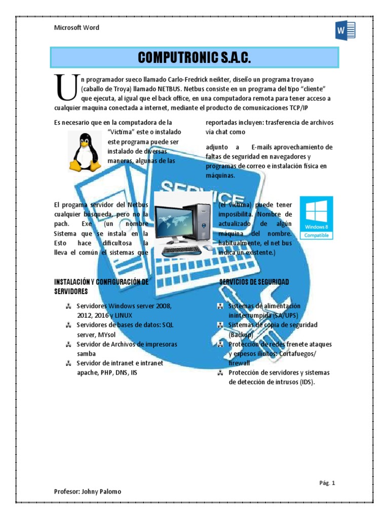 (caballo de Troya) llamado NETBUS. Netbus consiste en un programa del tipo “cliente”