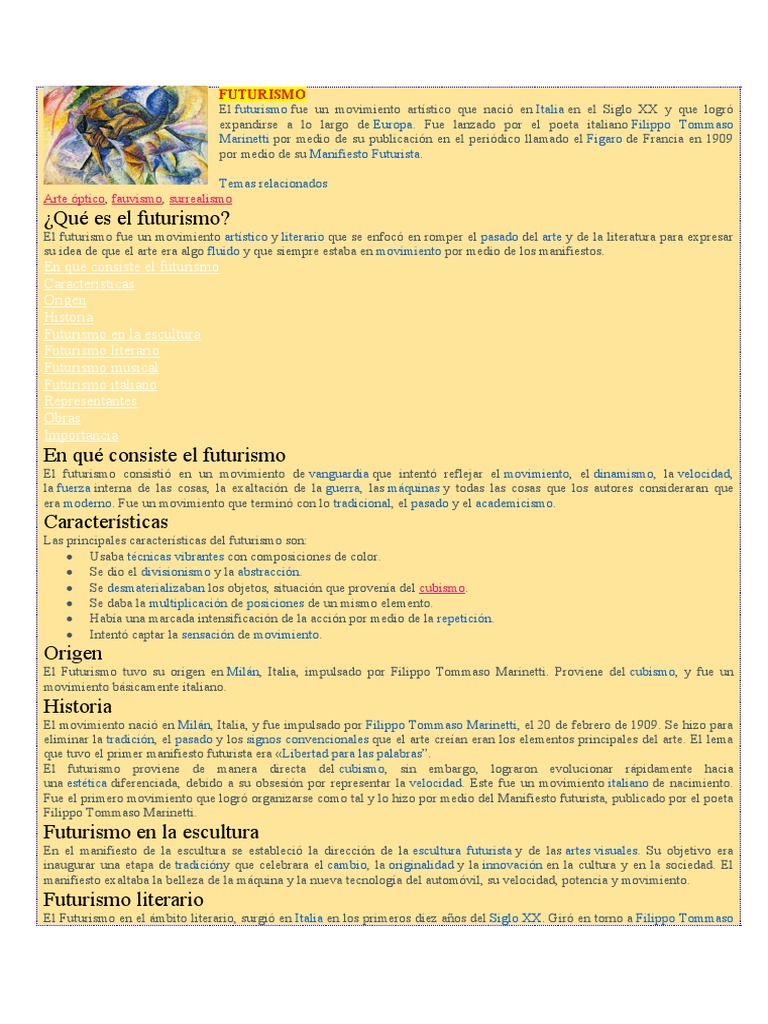 El Futurismo tuvo su origen en Milán, Italia, impulsado por Filippo Tommaso Marinetti. Proviene del cubismo, y fue un
