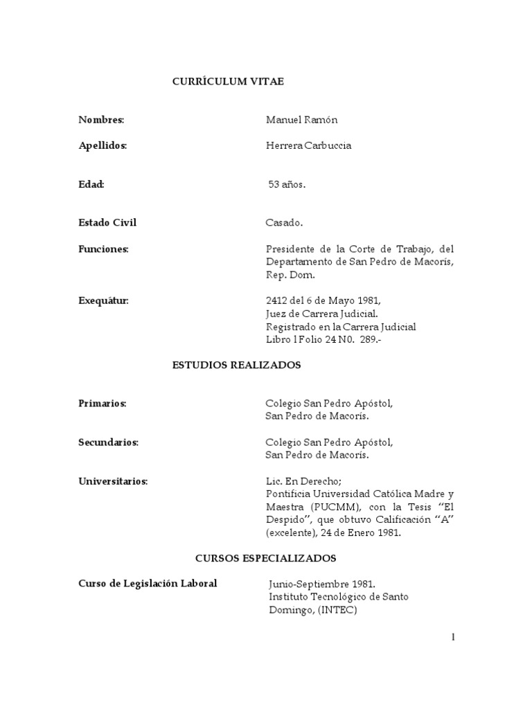 CURRCULUM VITAE Nombres: Apellidos: Manuel Ramn Herrera Carbuccia