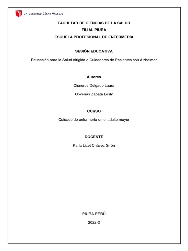 Educación para la Salud dirigida a Cuidadores de Pacientes con Alzheimer