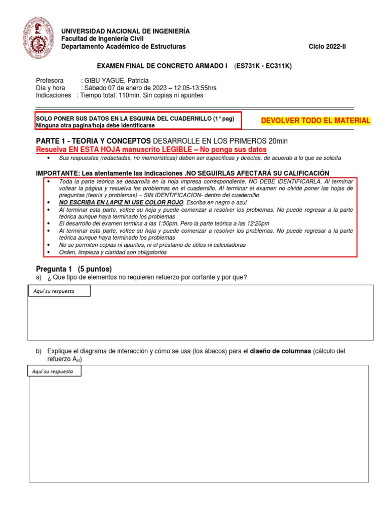 EXAMEN FINAL DE CONCRETO ARMADO I (ES731K - EC311K)