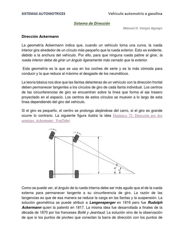 trasero, en una curva la rueda interior gira en un ángulo más cerrado que la exterior, de