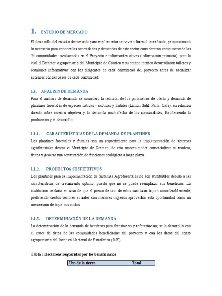 mencionar que el estudio de mercado realizado solo considera la oferta del vivero municipal, al no