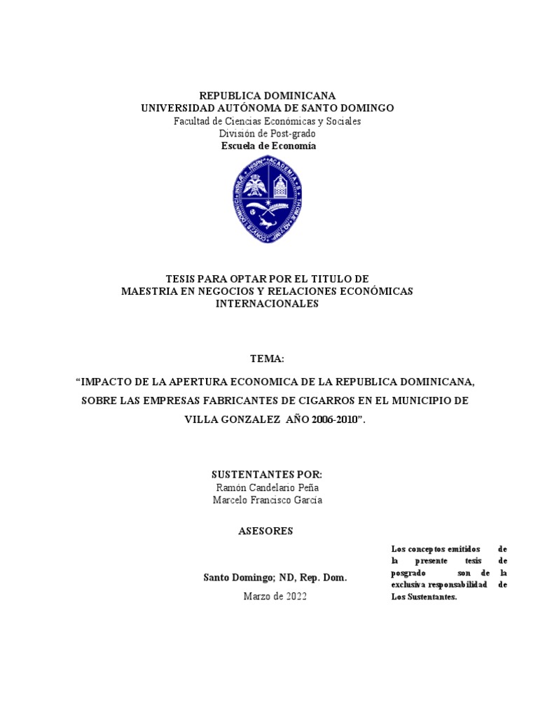 “IMPACTO DE LA APERTURA ECONOMICA DE LA REPUBLICA DOMINICANA,