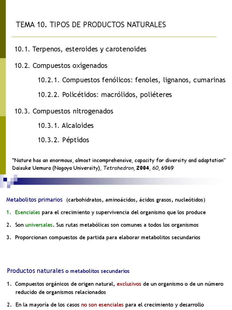 Tipos de Productos Naturales y Metabolitos