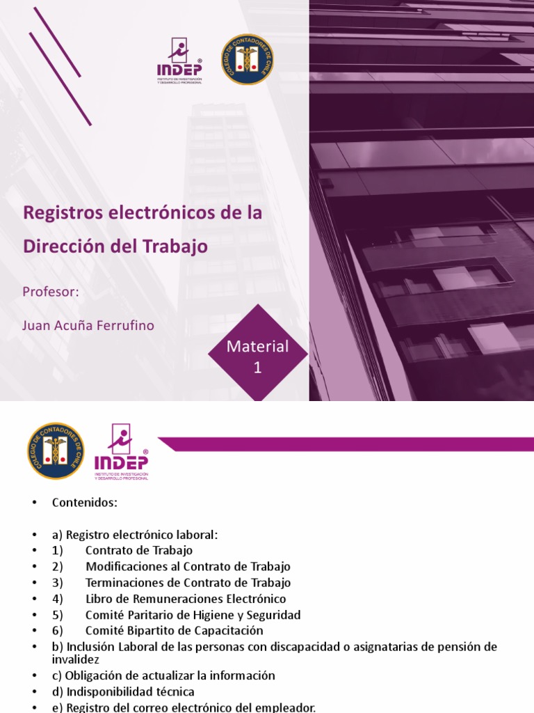 • Registro electrónico laboral (DT).
