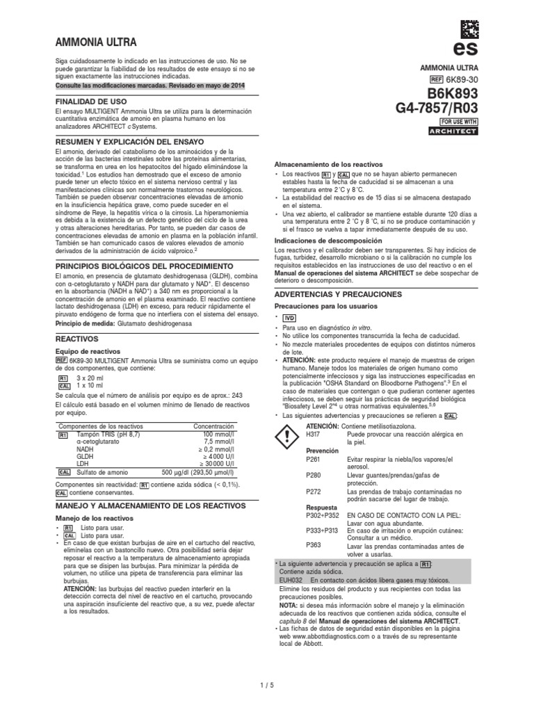 El amonio, en presencia de glutamato deshidrogenasa (GLDH), combina Manual de operaciones del sistema ARCHITECT se debe sospechar de