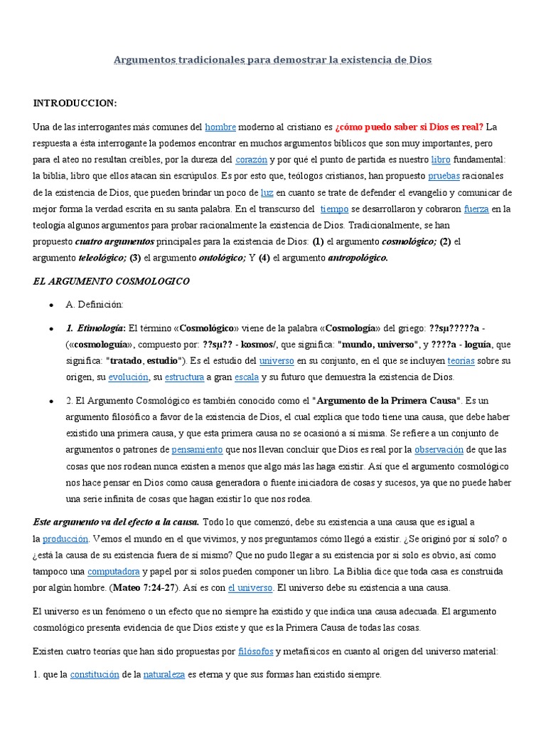 teología algunos argumentos para probar racionalmente la existencia de Dios. Tradicionalmente, se han
