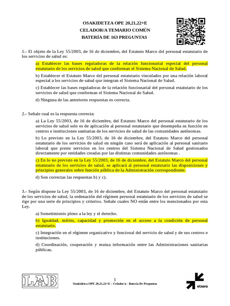Osakidetza OPE 20,21,22+E – Celador/a - Batería De Preguntas