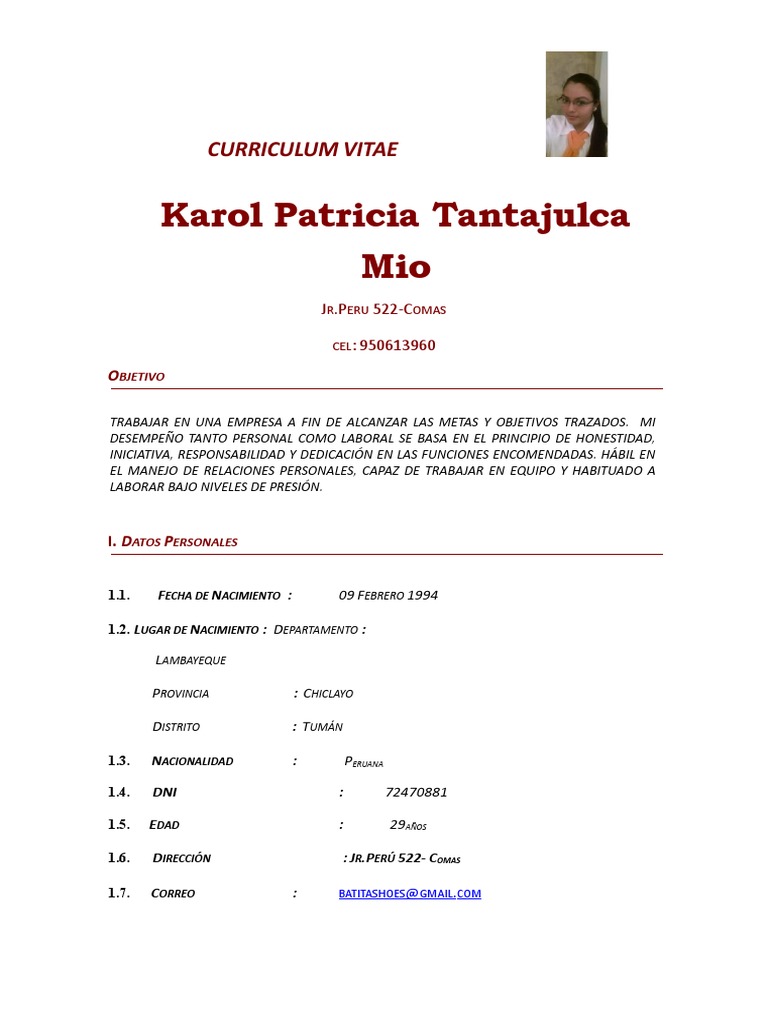 1.1. FECHA DE NACIMIENTO : 09 FEBRERO 1994