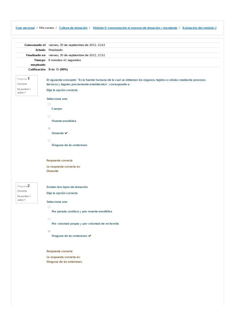 Área personal / Mis cursos / Cultura de donación / Módulo II: Aproximación al proceso de donación y trasplante / Evaluación del módulo 2
