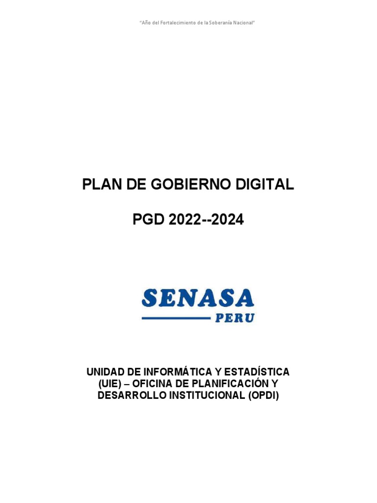 El Plan de Gobierno Digital (PGD) del SENASA para el período 2022-2024, constituye un