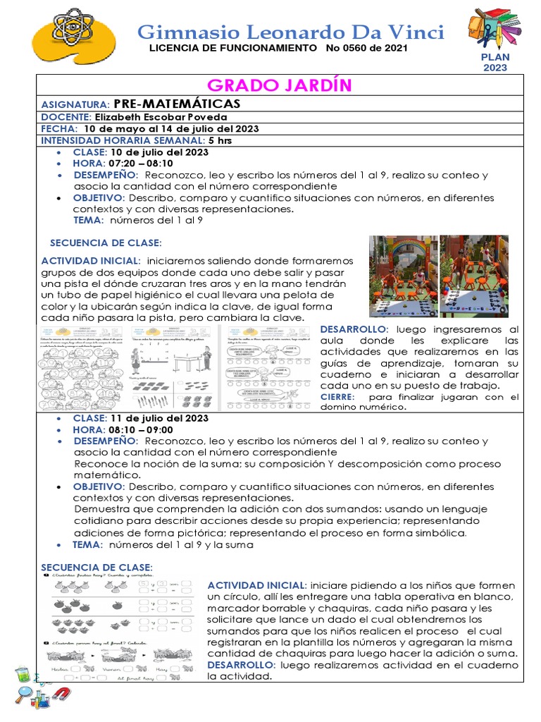 • DESEMPEÑO: Reconozco, leo y escribo los números del 1 al 9, realizo su conteo y