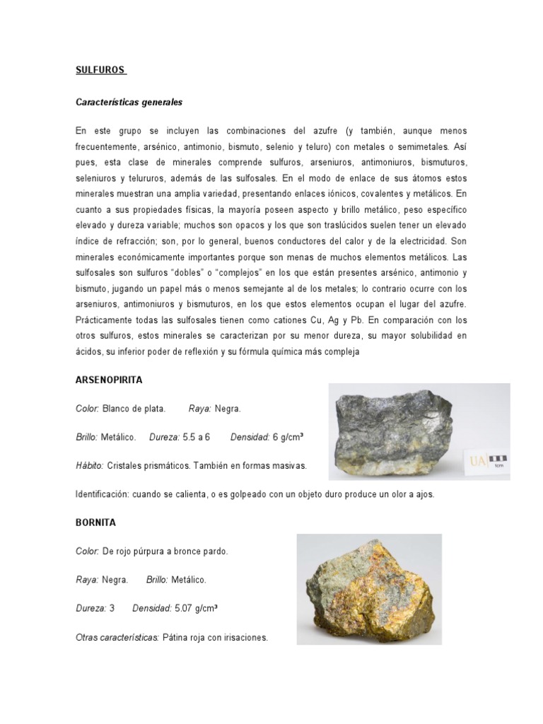 otros sulfuros, estos minerales se caracterizan por su menor dureza, su mayor solubilidad en