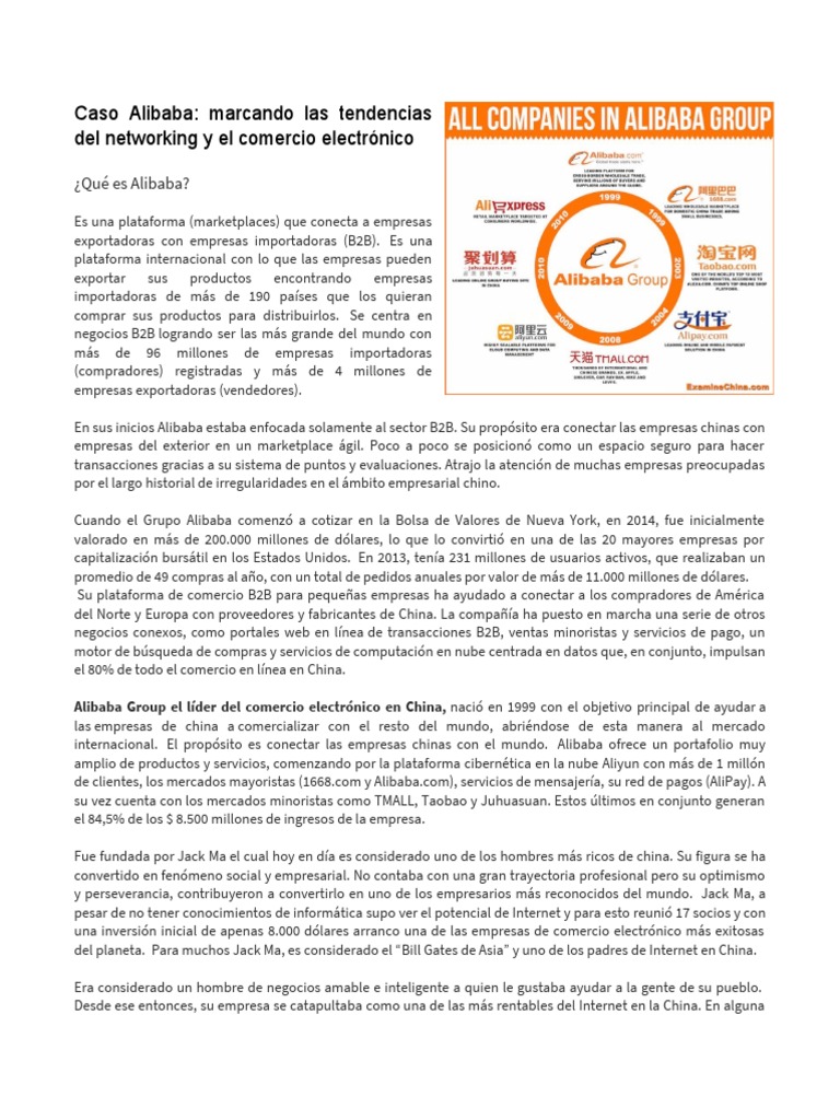 internacional. El propósito es conectar las empresas chinas con el mundo. Alibaba ofrece un portafolio muy