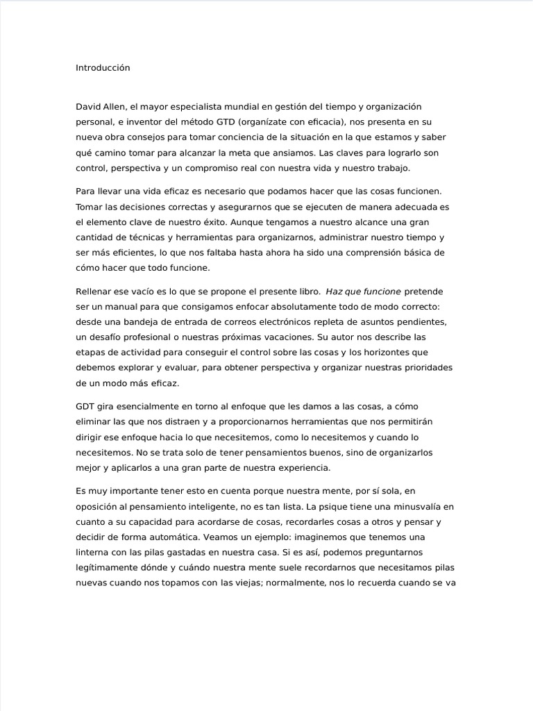 personal, e inventor del método GTD (organízate con efcacia), nos presenta en su