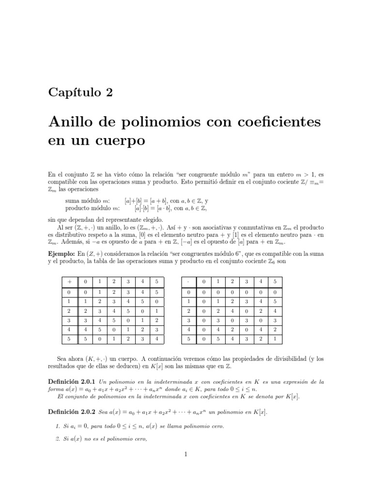 CAP ITULO 2. ANILLO DE POLINOMIOS CON COEFICIENTES EN UN CUERPO