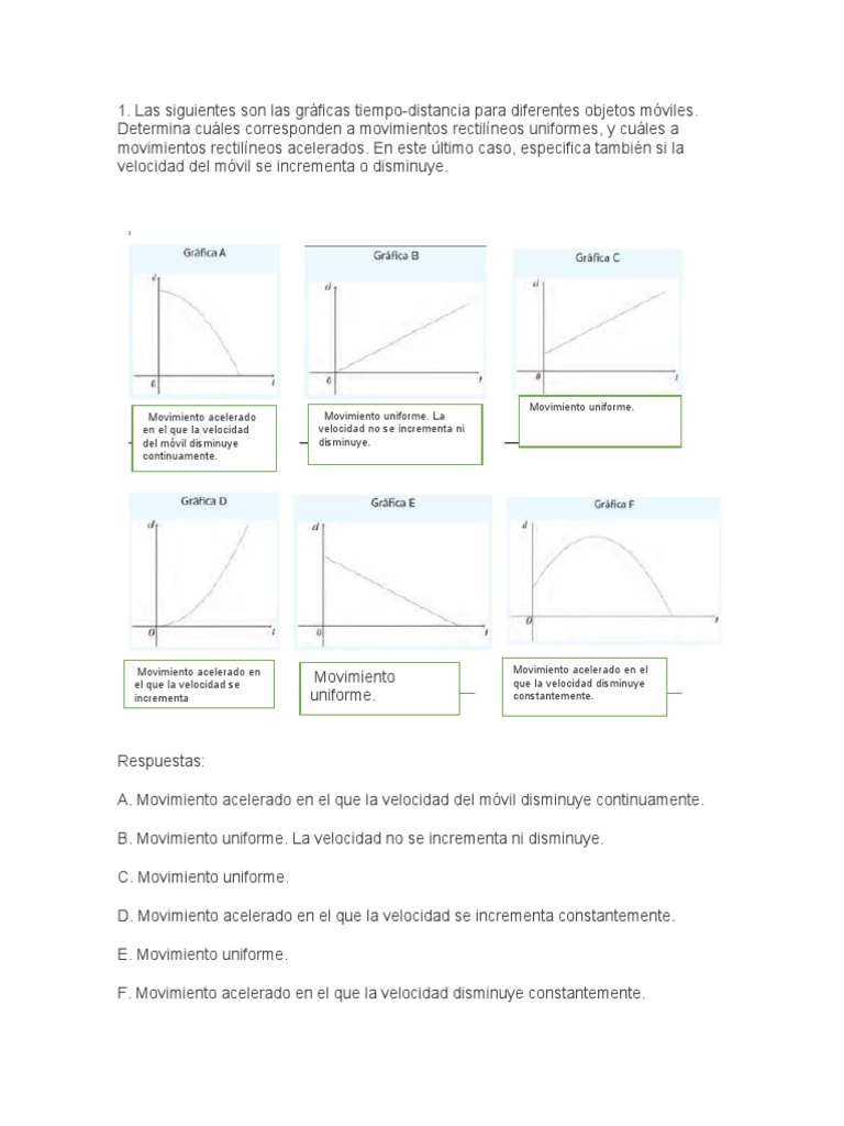 1. Las siguientes son las gráficas tiempo-distancia para diferentes objetos móviles.