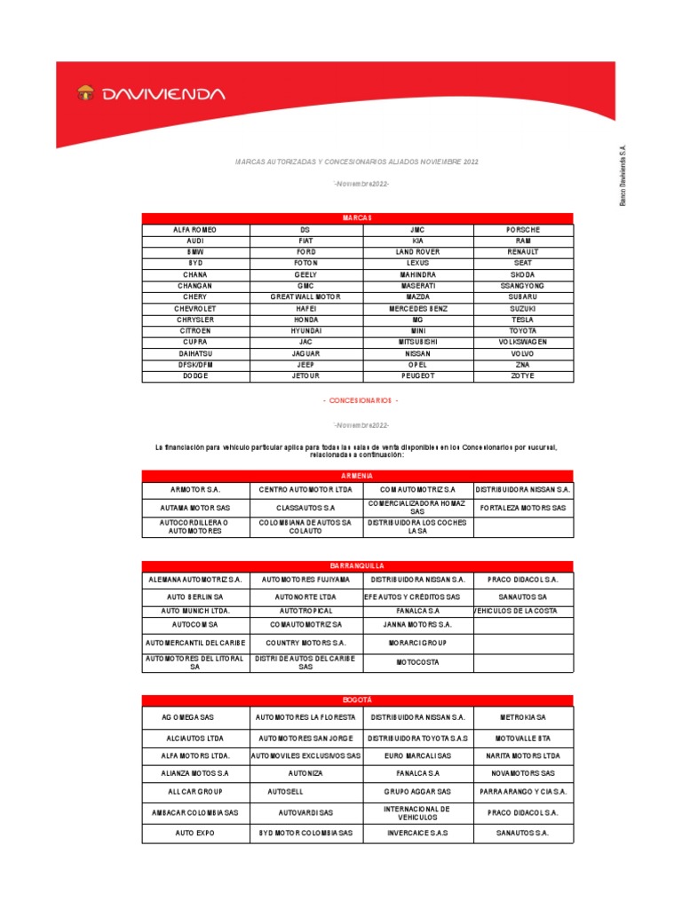 MARCAS AUTORIZADAS Y CONCESIONARIOS ALIADOS NOVIEMBRE 2022