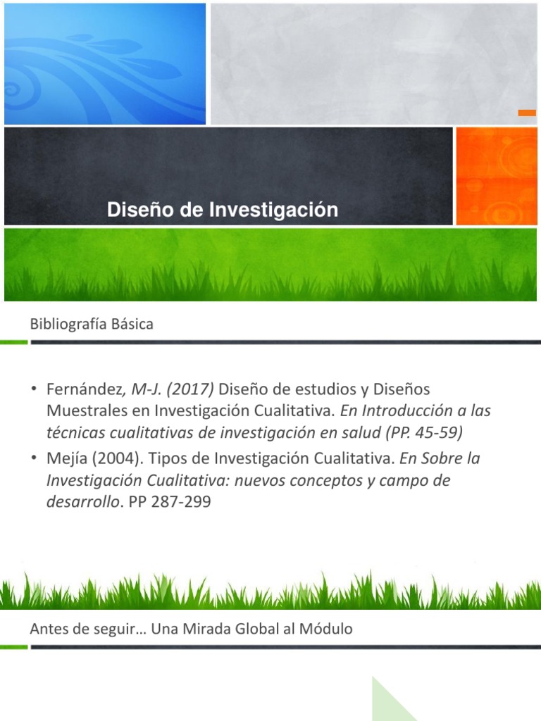 • Fernández, M-J. (2017) Diseño de estudios y Diseños