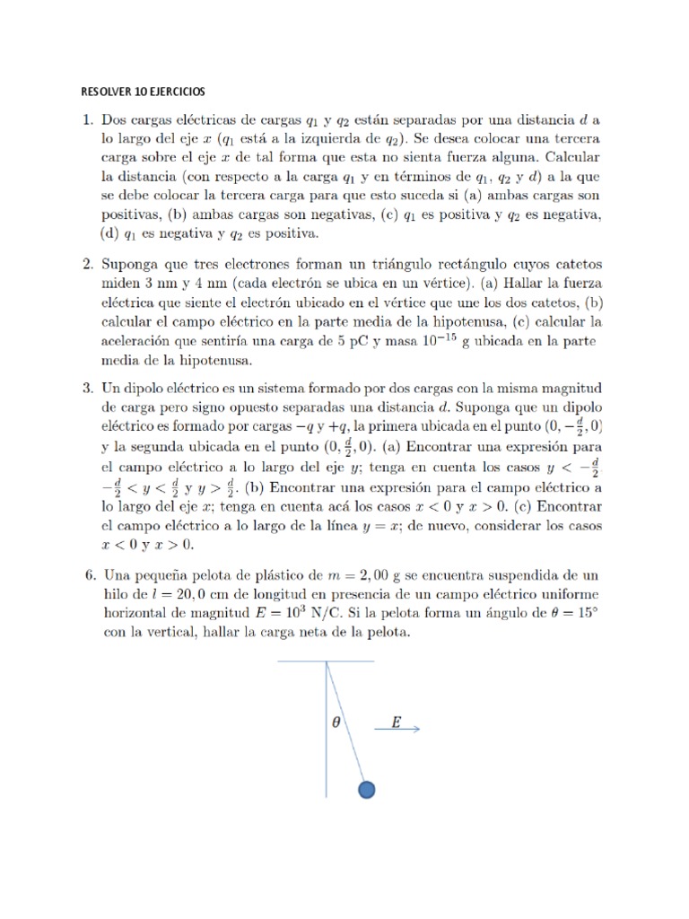 12. Una partícula de 20 mg se encuentra en un campo descendente uniforme de 2000