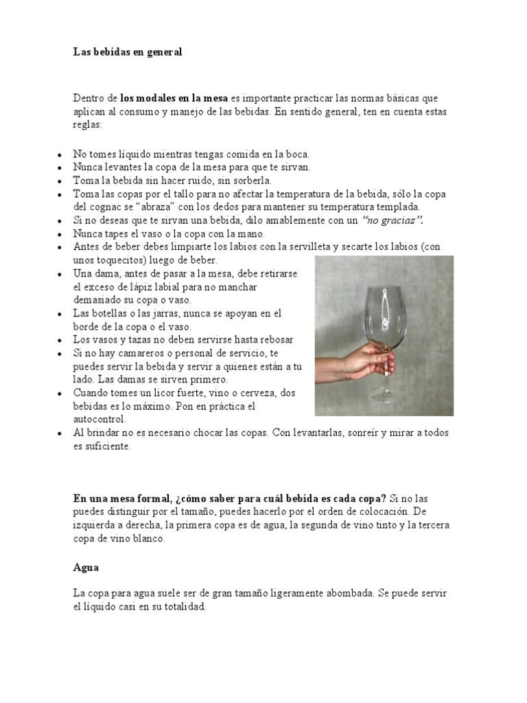 aplican al consumo y manejo de las bebidas. En sentido general, ten en cuenta estas