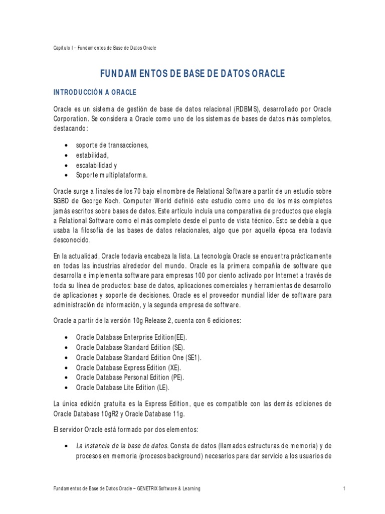 Fundamentos de Base de Datos Oracle GENETRIX Software & Learning