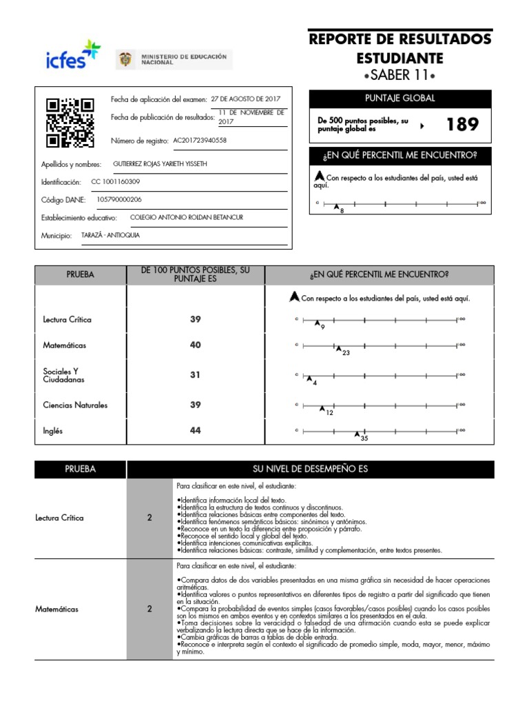 Apellidos y nombres: GUTIERREZ ROJAS YARIETH YISSETH