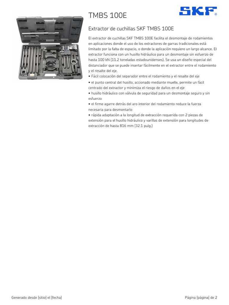 El extractor de cuchillas SKF TMBS 100E facilita el desmontaje de rodamientos
