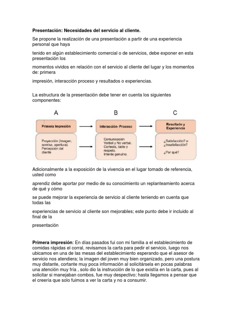 experiencias de servicio al cliente son mejorables; este punto debe ir incluido al