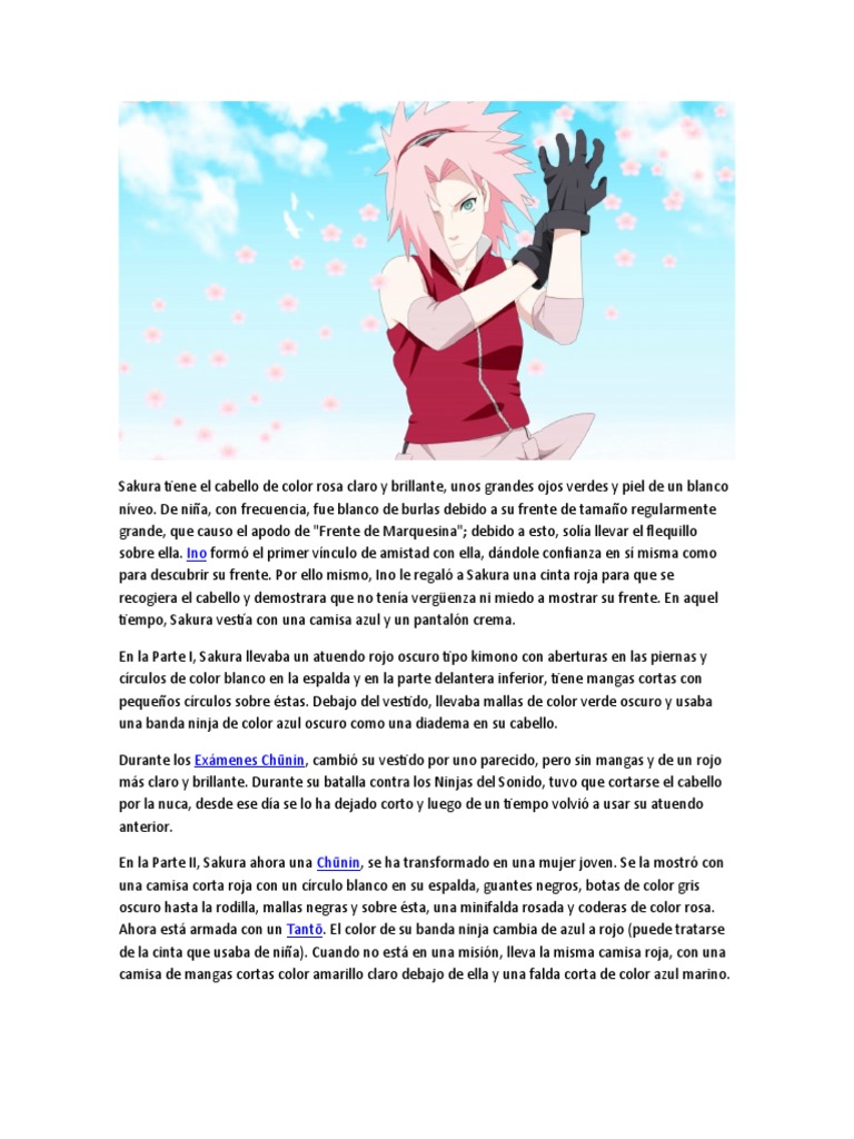 para descubrir su frente. Por ello mismo, Ino le regaló a Sakura una cinta roja para que se