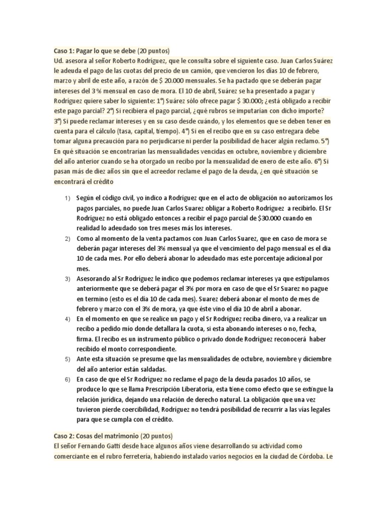 1) Según el código civil, yo indico a Rodríguez que en el acto de obligación no autorizamos los