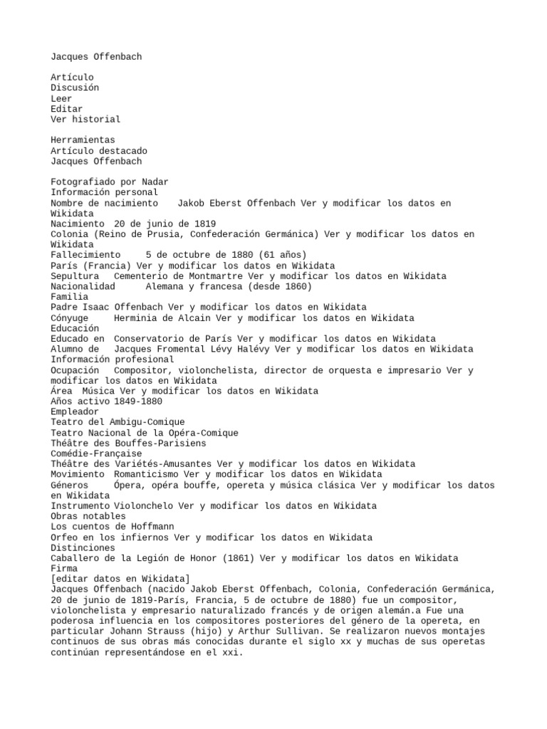 cafés.14 Generalmente se le conocía como «der Offenbacher», por su ciudad natal,