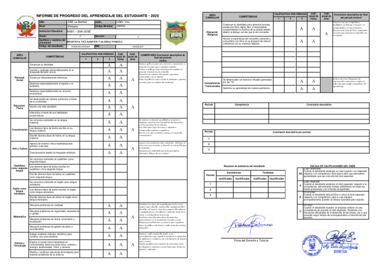 INFORME DE PROGRESO DEL APRENDIZAJE DEL ESTUDIANTE - 2020 CURRICULAR