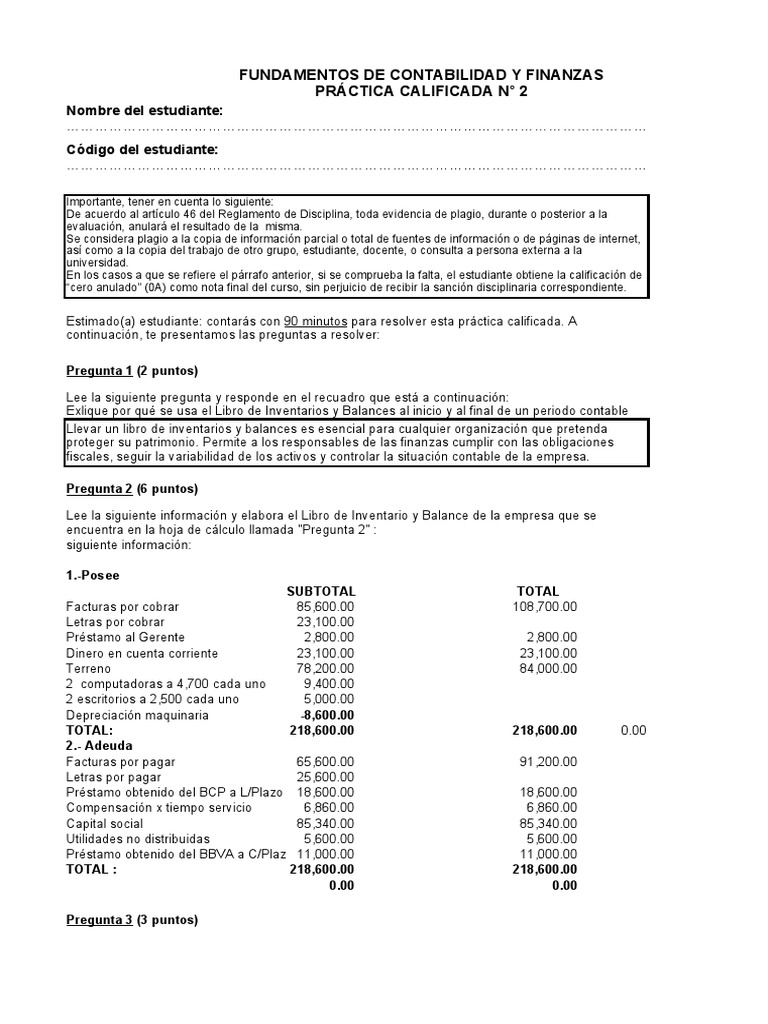 Estimado(a) estudiante: contarás con 90 minutos para resolver esta práctica calificada. A