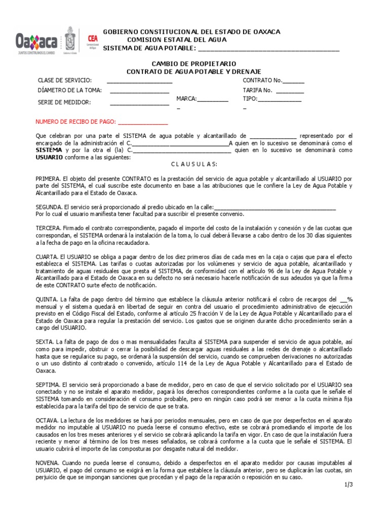 CONTRATO DE AGUA POTABLE Y DRENAJE
