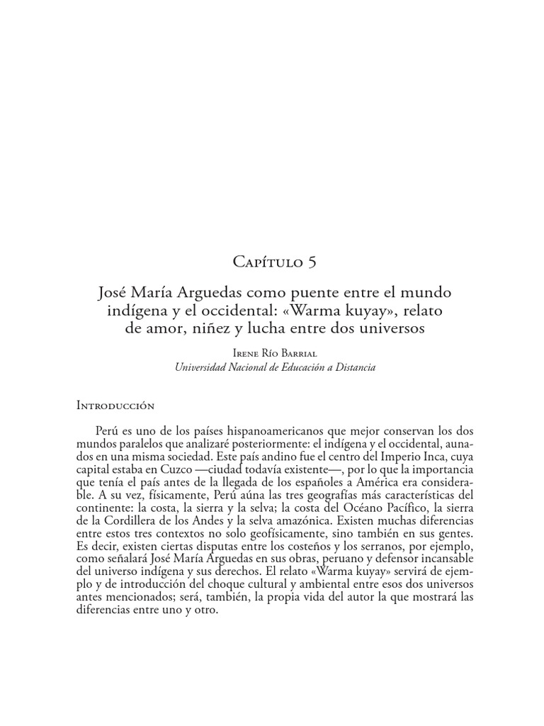 del universo indígena y sus derechos. El relato «Warma kuyay» servirá de ejem-