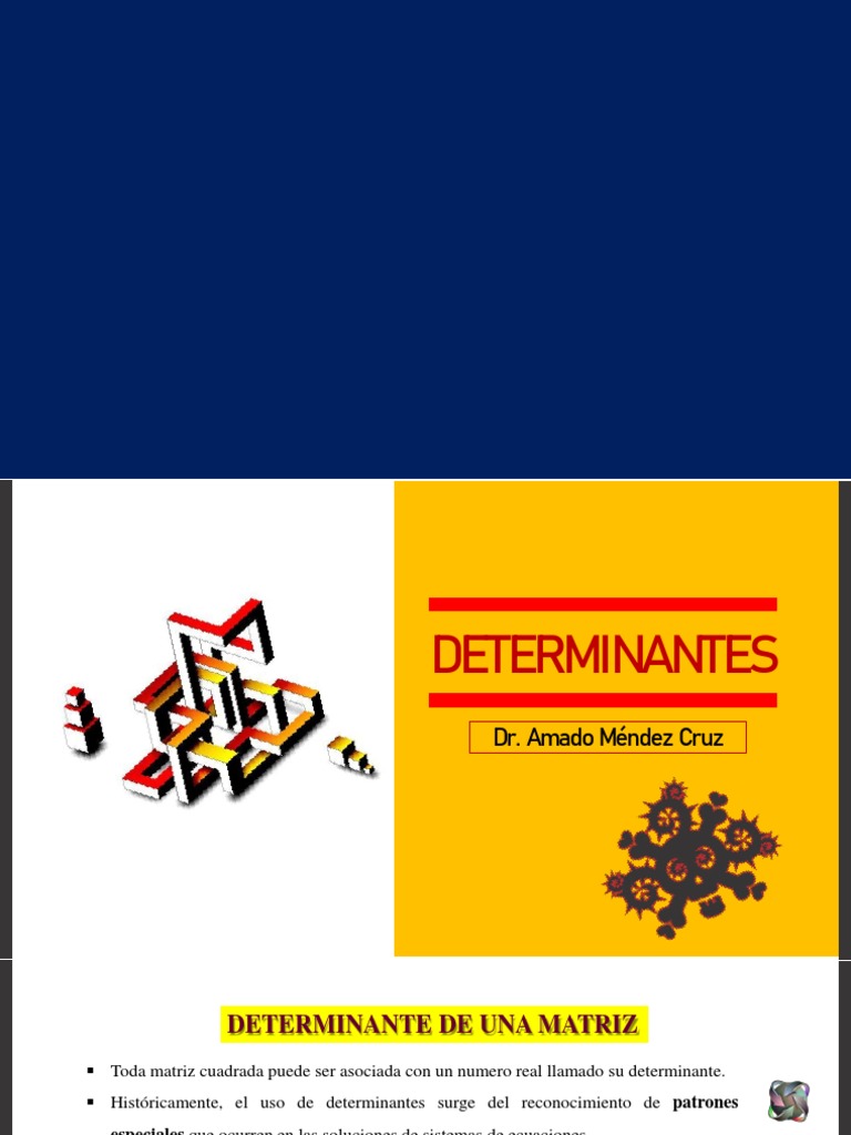 ▪ Toda matriz cuadrada puede ser asociada con un numero real llamado su determinante.