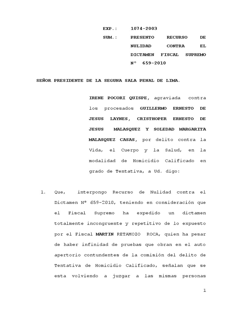 por el Fiscal MARTIN RETAMOZO ROCA, quien ha pesar