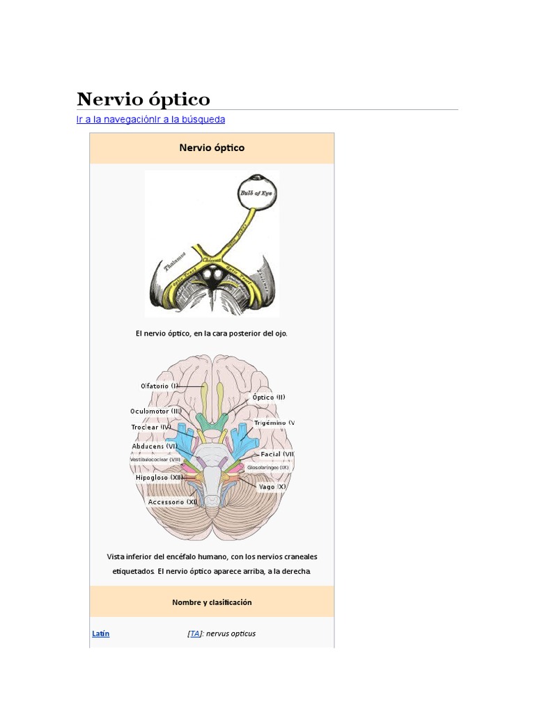 El nervio óptico es el II de los pares craneales. Un tracto de fibras con aproximadamente 1,2