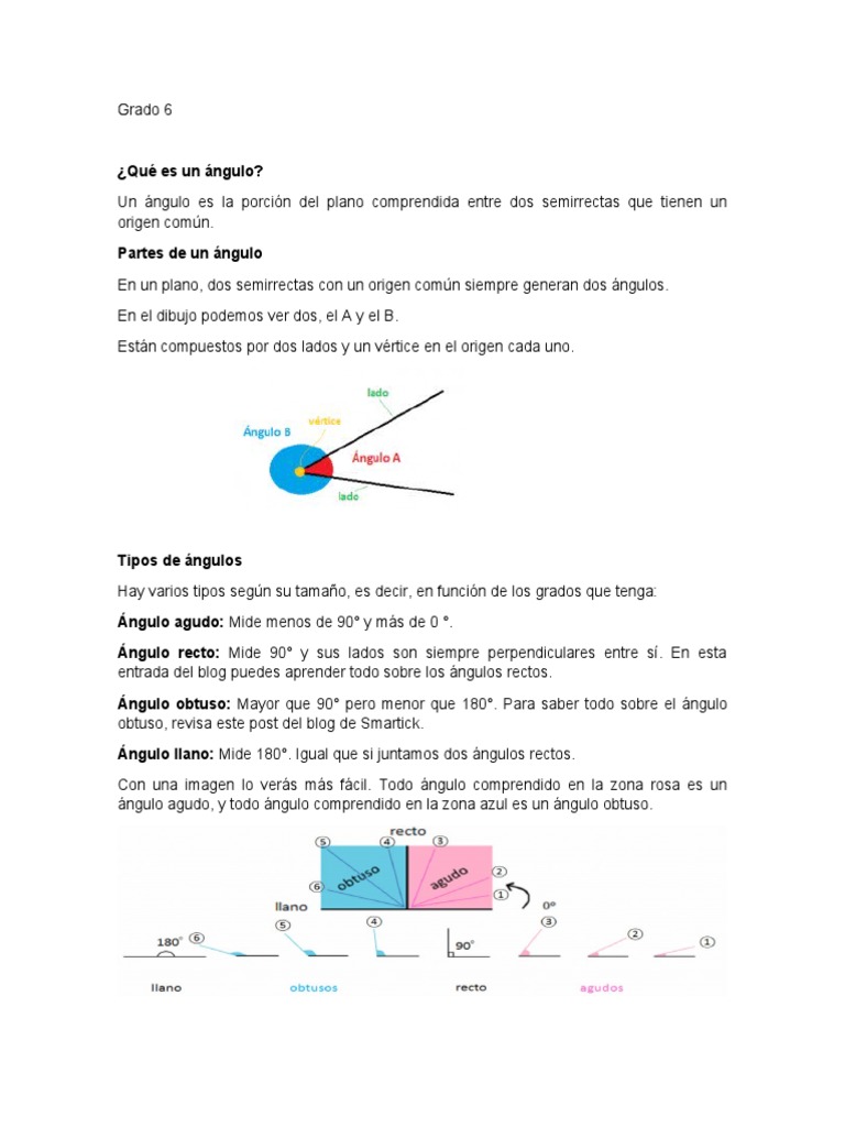 1. Lee con atención la lectura sobre los ángulos, y después responde las preguntas: