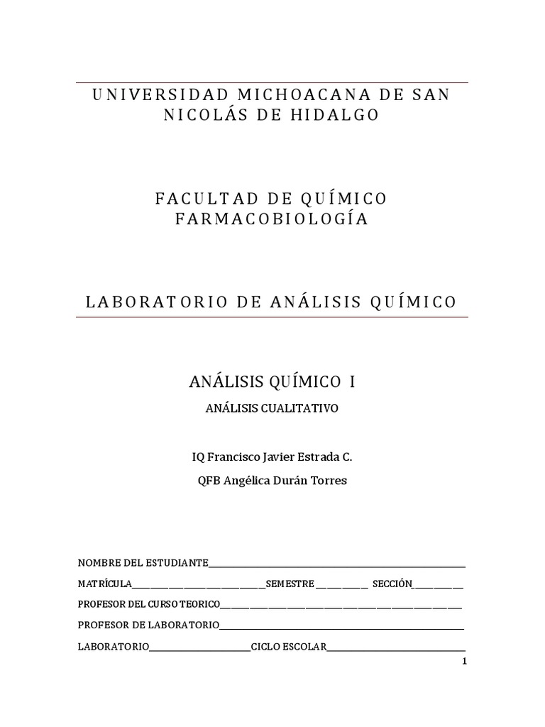 El Análisis Cualitativo Inorgánico se ocupa de establecer la identidad de sustancias